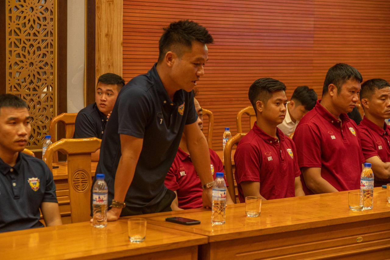 Tại buổi lễ, Ông Trần Quang Thưởng – Chủ tịch CLB bóng đá Hồng Lĩnh Hà Tĩnh đã có những trao đổi thẳng thắn các vấn đề liên quan đến hợp đồng, chuyển nhượng.