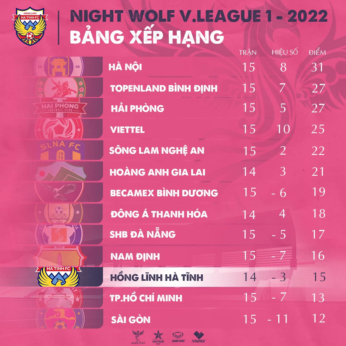 Chiều tối ngày 14/9, CLB Hồng Lĩnh Hà Tĩnh có trận tiếp đón CLB TP. Hồ Chí Minh trên sân nhà. Đây là trận đấu quan trọng khi cả 2 đội bóng đều có thành tích không tốt và nằm trong nhóm “cầm đèn đỏ”.Cuộc chạm trán giữa chủ nhà CLB Hồng Lĩnh Hà Tĩnh và đội khách CLB TP. Hồ Chí Minh trong khuôn khổ vòng 16 V.League 2022 diễn ra vô cùng kịch tính và hấp dẫn.
